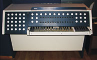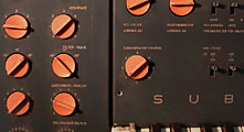 - Standorte und Typen >>> Die Subharchord-Modelle in der ehemaligen Tschechoslowakei, CSSR: Fotos vom Elektronischen Musikstudio bei Television Bratislava von 1968 (seinerzeitige Leitung: Ing. Ivan Stadtrucker). Foto links: Karlheinz Stockhausen bei einem Besuch im Studio - am Subharchord II / III.