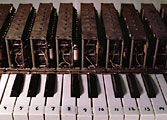 >>> BERLIN, DEUTSCHLAND / ehemals AdK-Standort Heubnerweg, nun Hanseatenweg Beim abgebildeten Instrument handelt es sich um einen Prototyp des Subharchords, das um 1981 in den Besitz der Akademie der Künste gelangte. Fotos: Manfred Miersch, mit freundlicher Genehmigung des Studios für Elektroakustische Musik der AdK. Folgende Fotos stammen von Mai 2005 (nach der Restaurierung), sie entsprechen dem gegenwärtigen optischen Zustand: Folgende Fotos stammen von Oktober 2002 (ausgebaute Mel-Filter mit zusätzlichem Keyboard): Die MEL-Filter-Elemente waren ausgebaut und mit einem Keyboard (Klaviatur) gekoppelt worden, um sie extern spielen zu können.